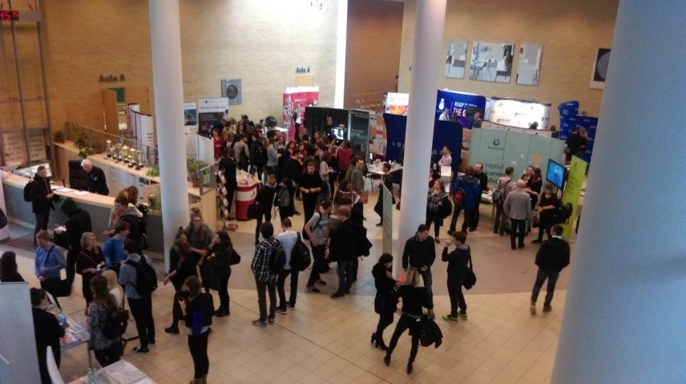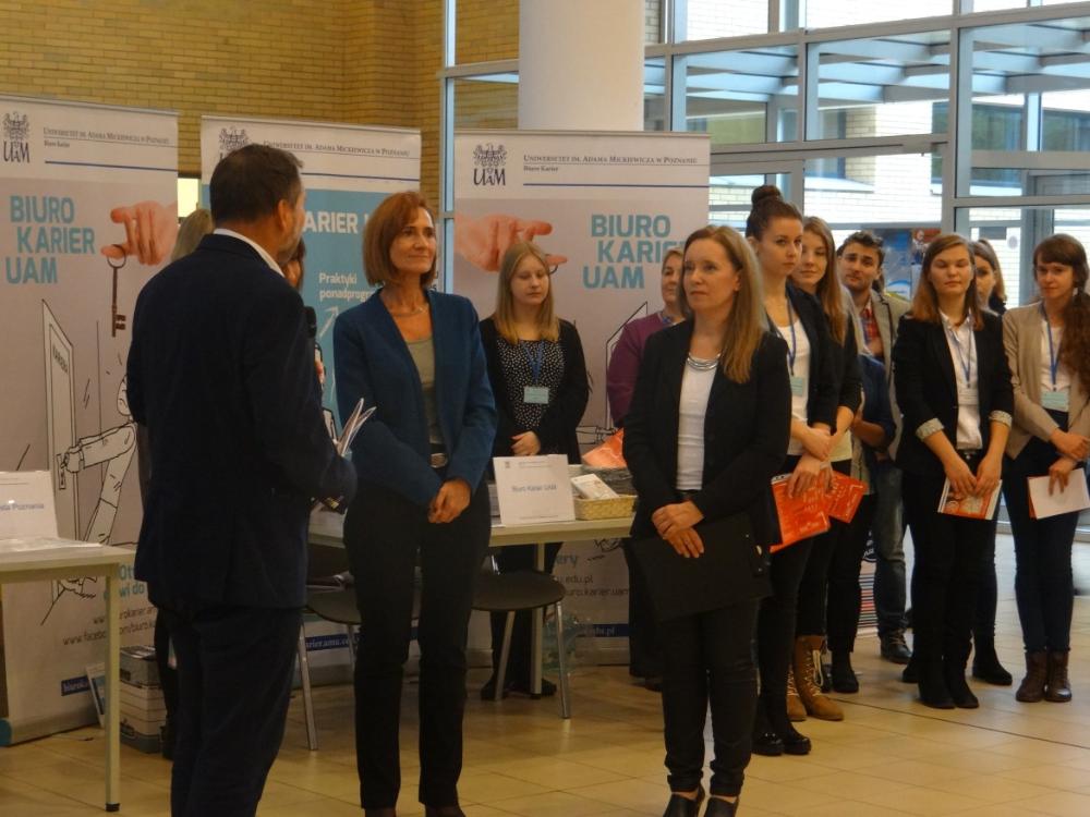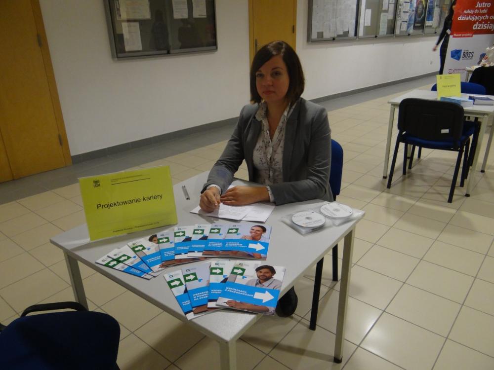 Na stoisku informacyjnym Powiatowego Urzędu Pracy w Poznaniu studenci mieli okazję zapoznać się z informacjami dotyczącymi aktualnego zapotrzebowania na lokalnym rynku pracy, poznać formy wsparcia w podejmowaniu zatrudnienia oferowane przez Urząd oraz uzyskać informacje nt. przyznawanych przez Urząd dofinansowań do podjęcia własnej działalności gospodarczej.